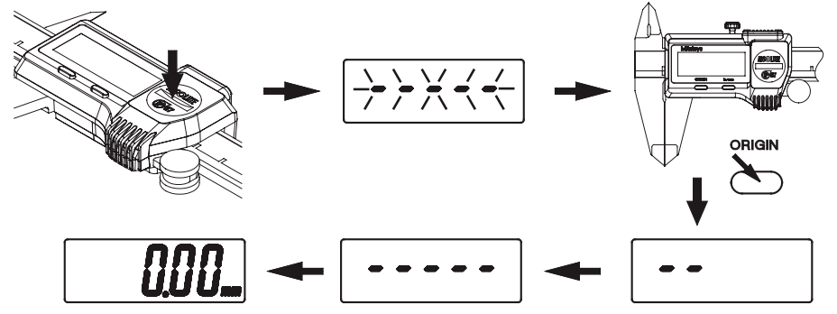 日本三豐設備的數顯卡尺安裝電池后,顯示器會出現如下圖"-----"閃爍,這個是需要進行ORIGIN(原點)設置。